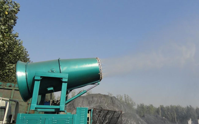 功力強(qiáng)、射程遠(yuǎn)、覆蓋范圍廣、可實(shí)現(xiàn)精量噴霧;工作效率高、噴霧速度快;對(duì)容易引起塵埃的堆場(chǎng)噴水除塵時(shí),噴出的霧粒細(xì)小、與飄起的塵埃接觸時(shí),形成一種潮濕霧狀體,能快速將塵埃抑制降沉。